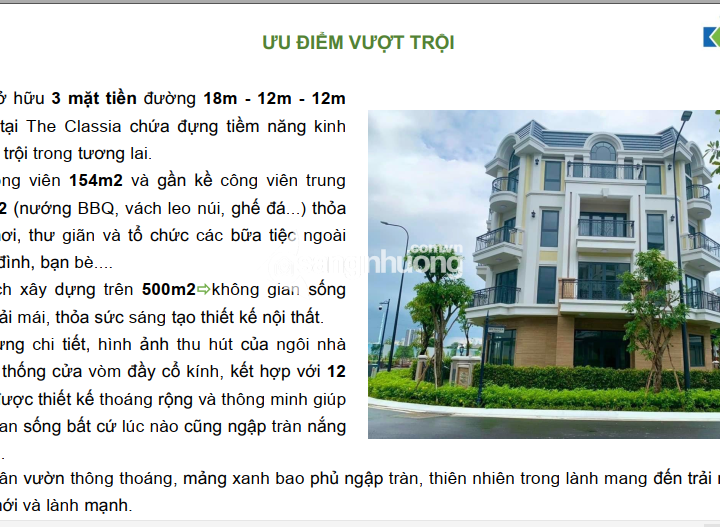 Khu compound The Classia của Khang Điền hiện đang còn 1 biệt thự phiên bản đặc biệt, cực kỳ đẹp với thông số như sau: