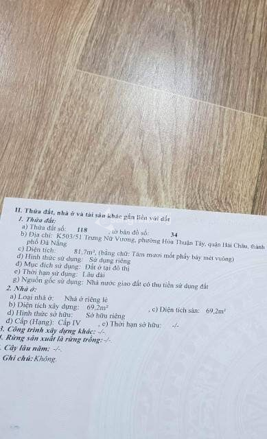 Cần bán nhà C4 , kiêt oto 4m5, hướng Tây, 82m2, đường Trưng nữ Vương. Gia 3ti6.