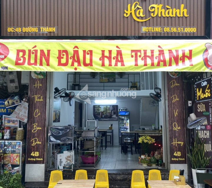 Cửa hàng 01 tầng + 01 gác lửng, diện tích sàn 25m2 (bếp và công trình phụ riêng biệt, mặt đường chính thuộc khu ăn uống đi lại đông đúc phố Đường Thành. Hiện đang kinh doanh tốt do không quản lý được nên muốn sang nhượng lại cho bạn nào thực sự có nhu cầu, cửa hàng có lượng khách quen đông và ổn định. Khu đông dân cư, khách du lịch, an ninh tốt, giao thông thuận tiện đi lại, có vỉa hè để xe. Để lại toàn bộ đồ đạc. Liên hệ chính chủ: Tùng Ngọc 0856510000. Miễn trung gian